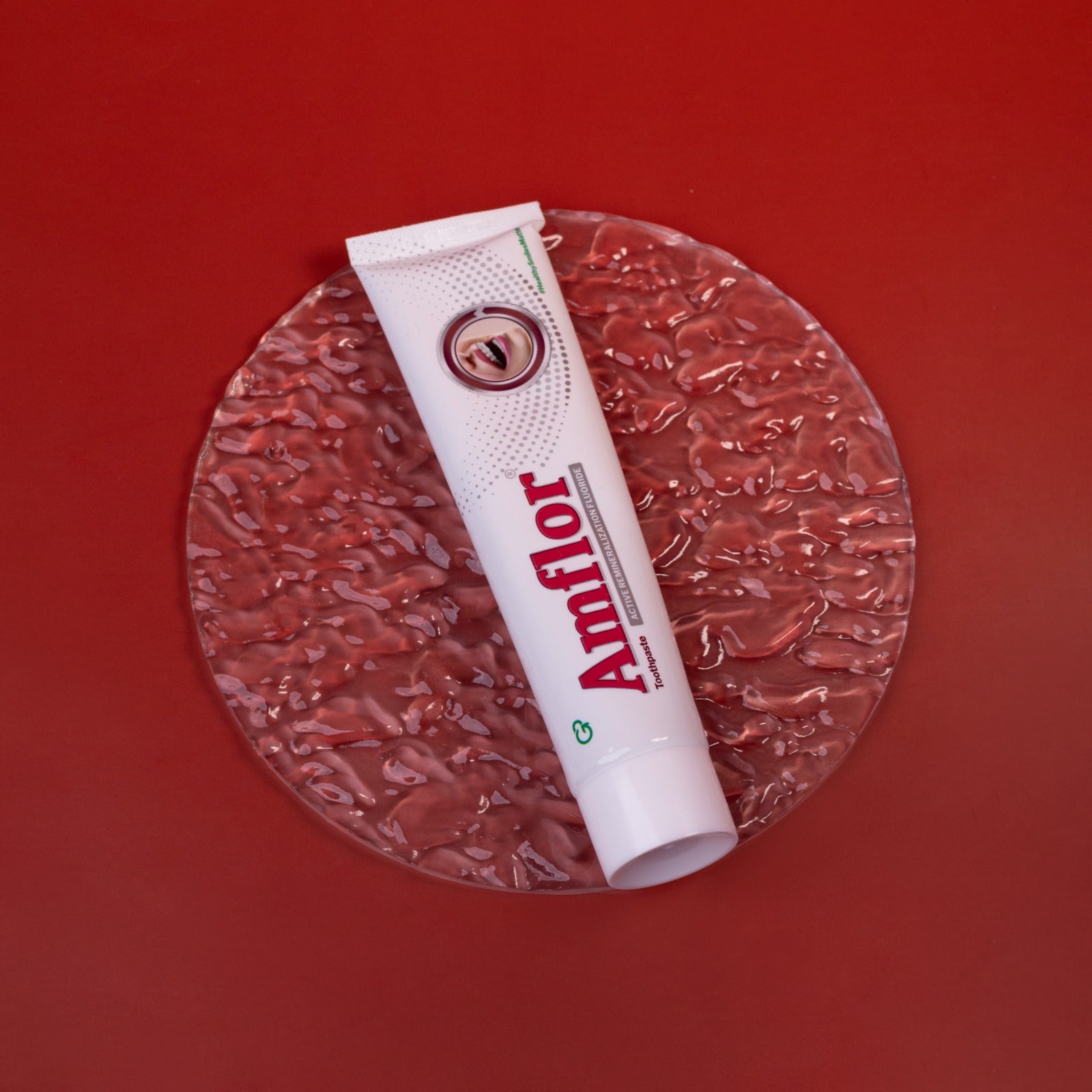 Anti-bacterial, anti-plaque action: The organic amine fluoride in Amflor inhibits bacterial activity and reduces their acid production, safeguarding teeth and gums from damage caused by microbes.