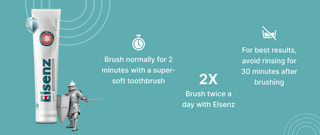 Brush twice daily with Elsenz toothpaste on a soft toothbrush, or as recommended by your dentist. Do not swallow.