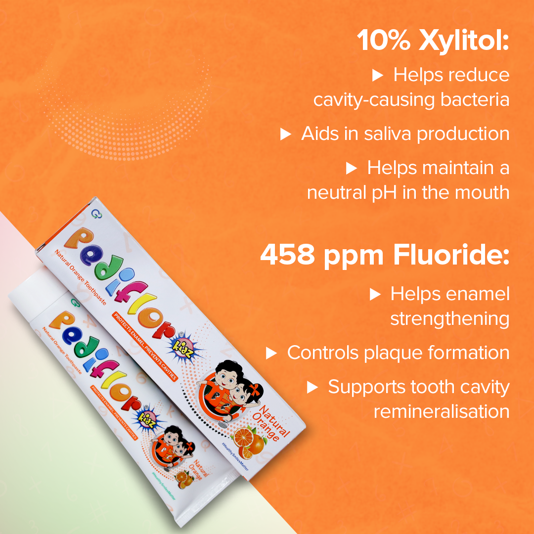 PediflorKidz is an enamel-protecting, anti-cavity-busting toothpaste for kids that comes with a natural orange flavour, making brushing time an enjoyable experience.