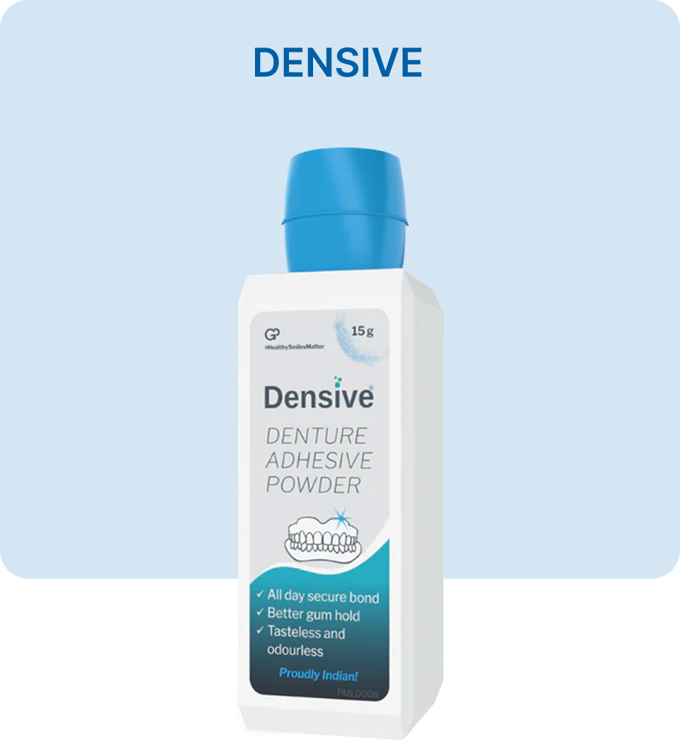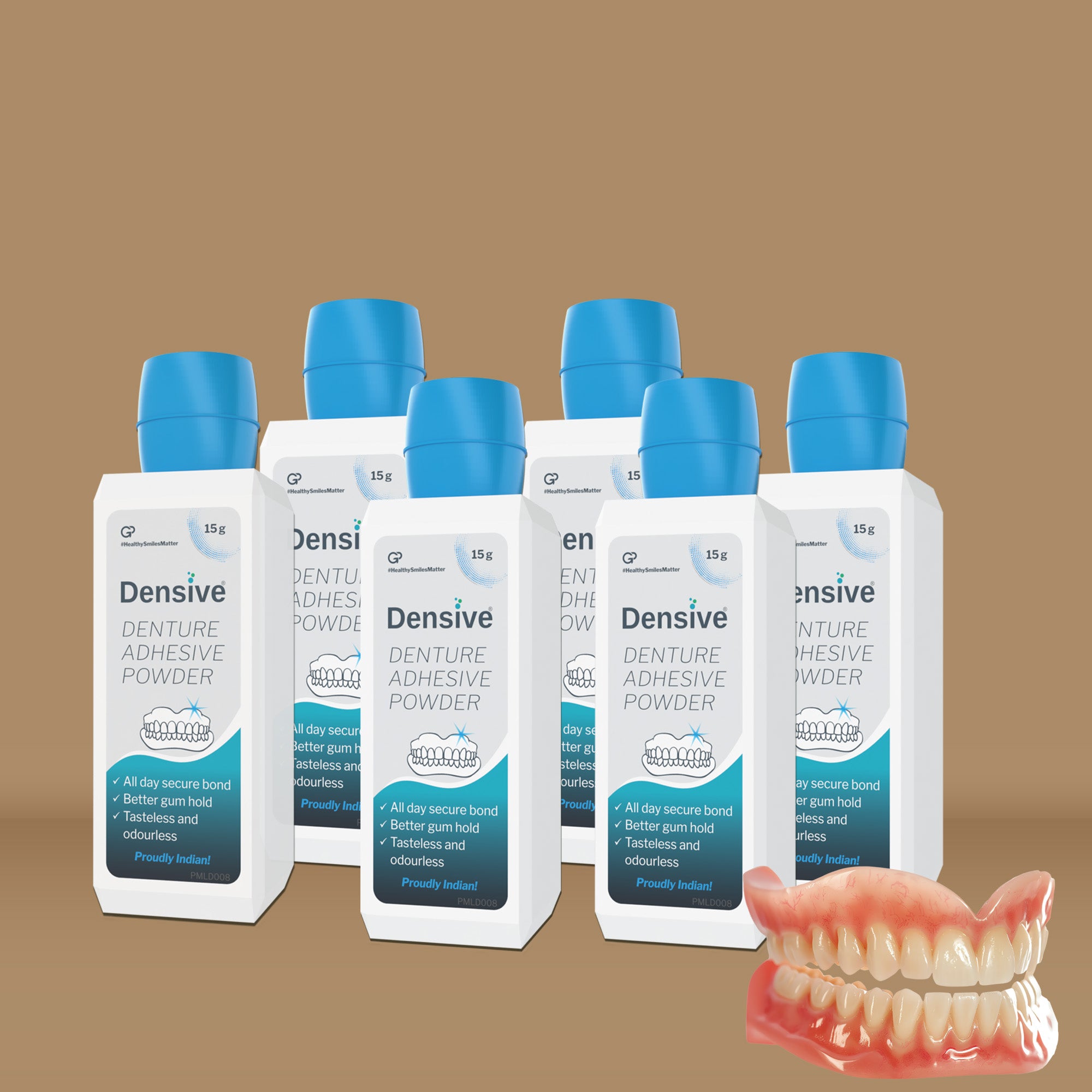 Densive denture adhesive powder is a tasteless, odor-free, safe-to-use denture-fixing agent that provides full stability to loose or unpredictable dentures, allowing you to chew, swallow, talk, smile, and laugh with confidence.