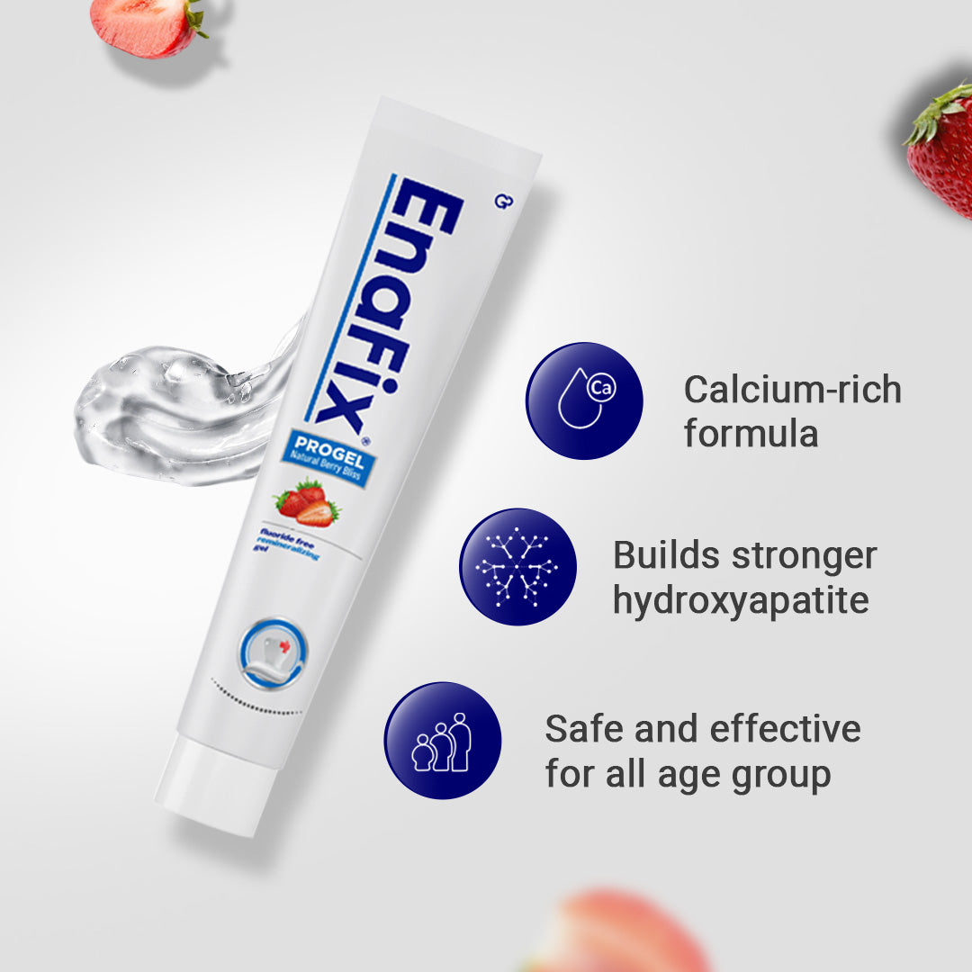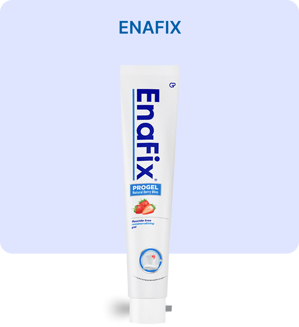 Enafix Progel is fluoride-free, and suitable for patients with milk protein allergies, lactose intolerance, or dental fluorosis. Its biocompatible formulation makes it gentle and safe for daily use, even in young children.